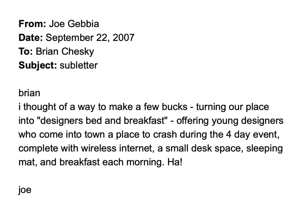 This is how Airbnb started. Find your Brian and make your ideas (dreams and plans) come true.