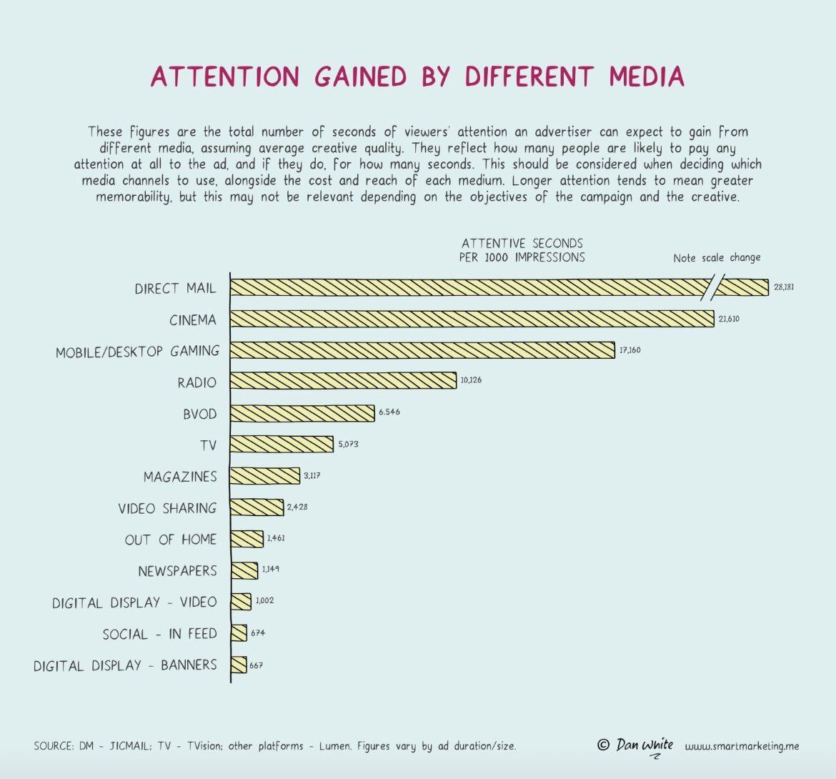 Why do agencies and their owners ignore this chart and insist on doing massively mediocre work on TV instead of more innovative work everywhere else? I see an opportunity here.